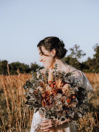The couple had their first look in a beautiful quiet field, and enjoyed some bird watching together before heading out to hike to the split oak ceremony site. Bird watching and enjoying nature has always been a hobby that the couple shared and has grown over the years. We then hiked two miles to the ceremony site, but still stopped along the way for a little bit of bird watching and nature appreciation. The couple wrote their vows in Florida field note books, and a little custom carabiner engraved with their elopement date dangled from their hiking pack next to the bride's dried flower bouquet.