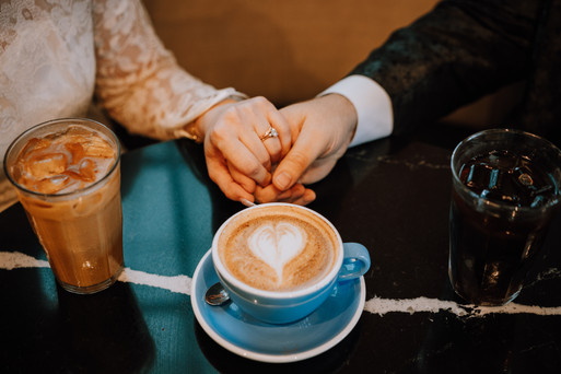 -sharing a coffee after the ceremony at a local coffee shop, The Glass Knife, with just the two of them